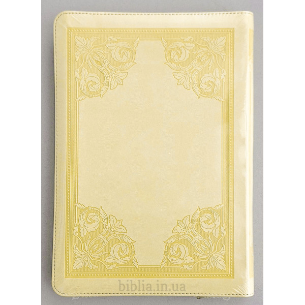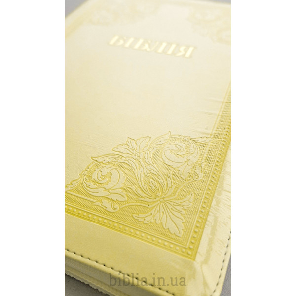 М'яка палітурка зі шкірозамінника жовтого кольору з тисненням.