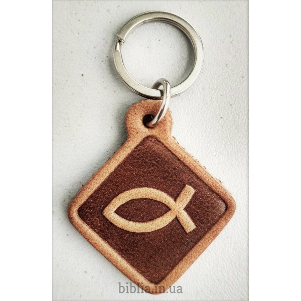 Брелок кожаный "Рыбка" (BR 4) ромб малый, коричневый