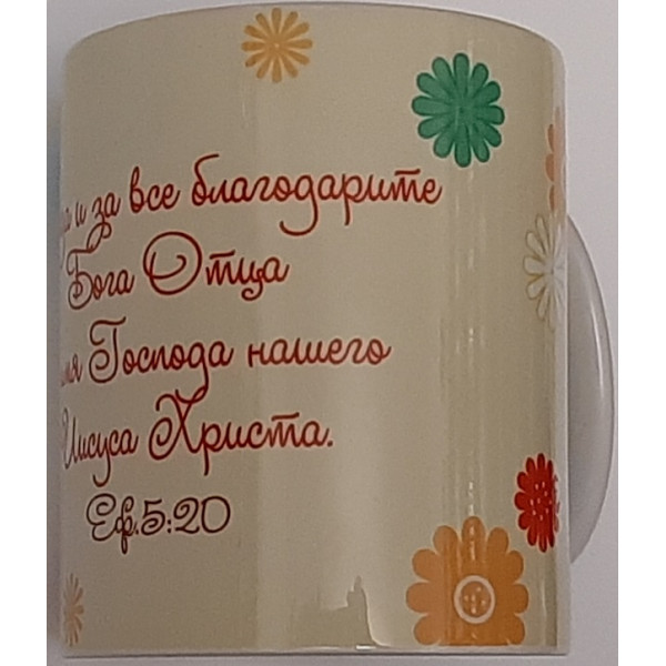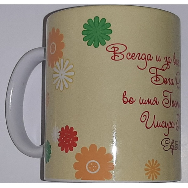 Чашка керамическая: Всегда и за всё благодарите Бога Отца во имя Господа нашего Иисуса Христа. Еф. 5:20.