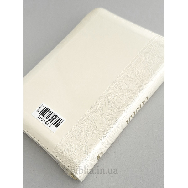 М'яка палітурка зі шкірозамінника кольору слонової кістки з тисненням "троянди".