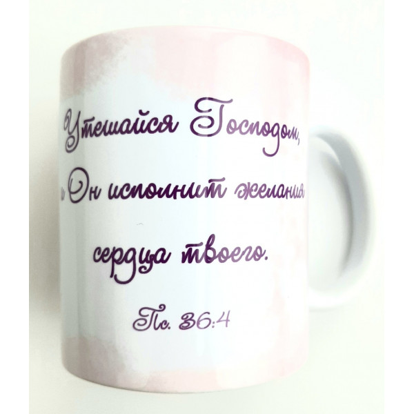 Чашка керамічна: З Днем Народження! Хай Господь буде розкіш твоя, і Він сповнить тобі твого серця бажання! Пс. 37:4 (36:4).