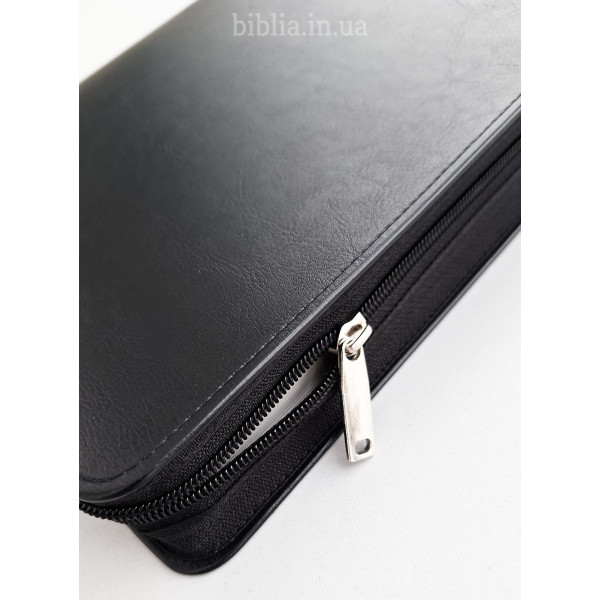 Обкладинка з цупкого шкірозамінника чорного кольору для Біблії. Надійний, приємний на дотик матеріал..