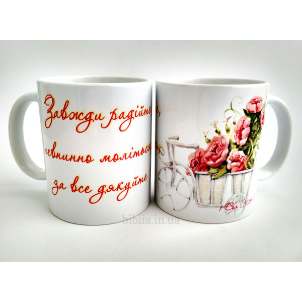 Чашка керамічна: Завжди радійте, невпинно моліться, за все дякуйте. 1 Сол. 5:16-18.
