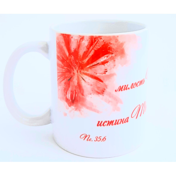 Чашка керамічна: Господи, аж до небес милосердя Твоє, аж до хмар Твоя вірність. Пс. 36:5 (35:6).