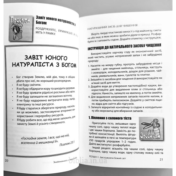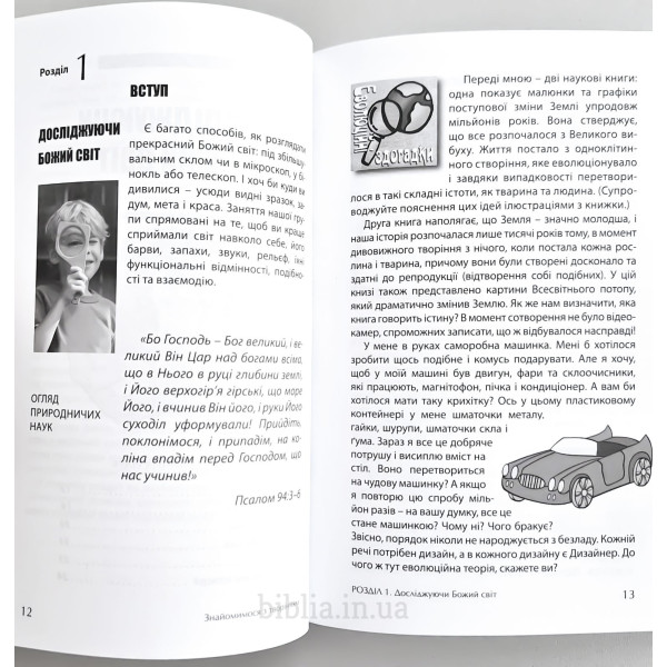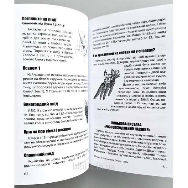У книзі багато практичних завдань, наочних уроків, лялькових вистав, тематичних ігор та саморобок. Знайомитися з творінням можна з дітьми та онуками на дворі, у таборі, в недільній школі, в гуртку чи групі продовженого дня.